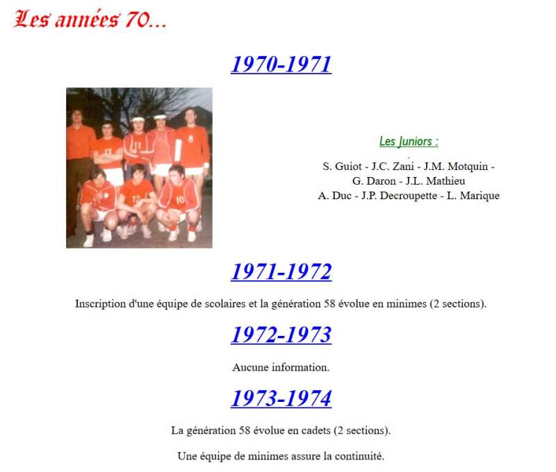 Les rares documents en notre possession qui relatent les faits d'équipes de jeunes avant 1968, figurent dans la partie "Historique hommes" de notre site.