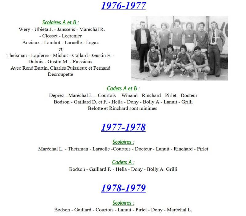 Loin de toute considération misogyne, il sera essentiellement fait état, dans cette page, des souvenirs laissés par la présence d'équipes masculines au niveau des jeunes. Les demoiselles, dont les aventures ont toujours été liées avec celles des Dames, ont en fait leur espace personnel.